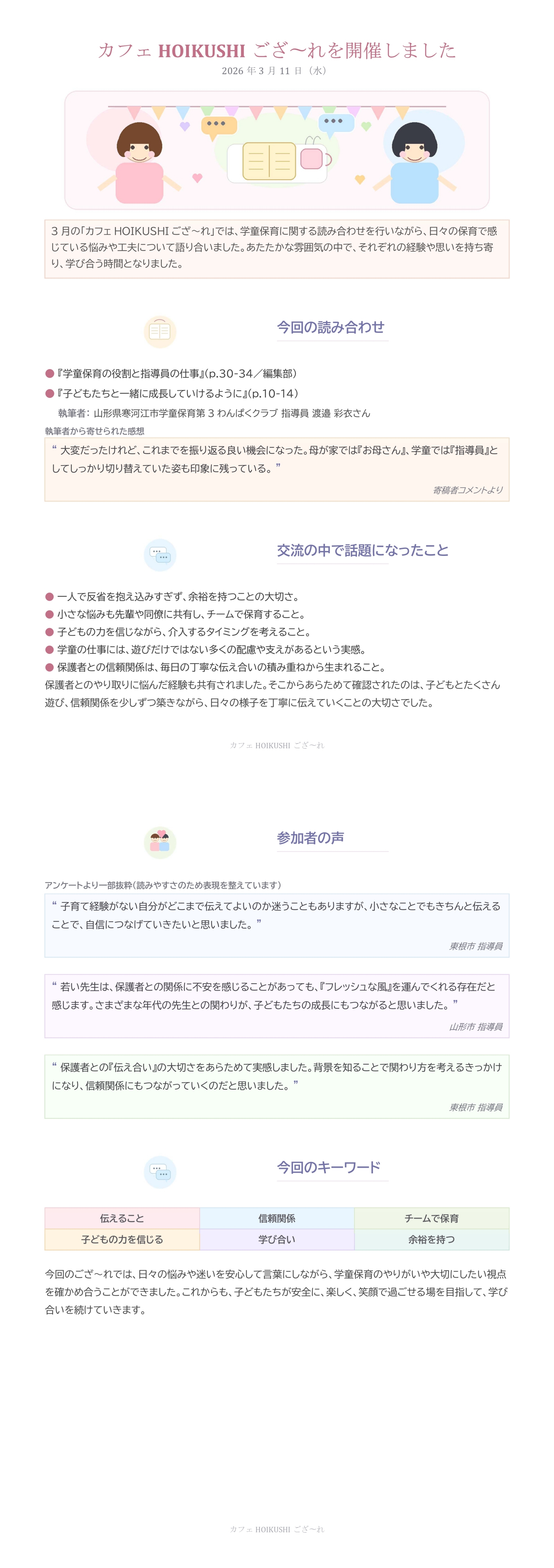 学童保育で働いている皆さん、日々の保育で・・・