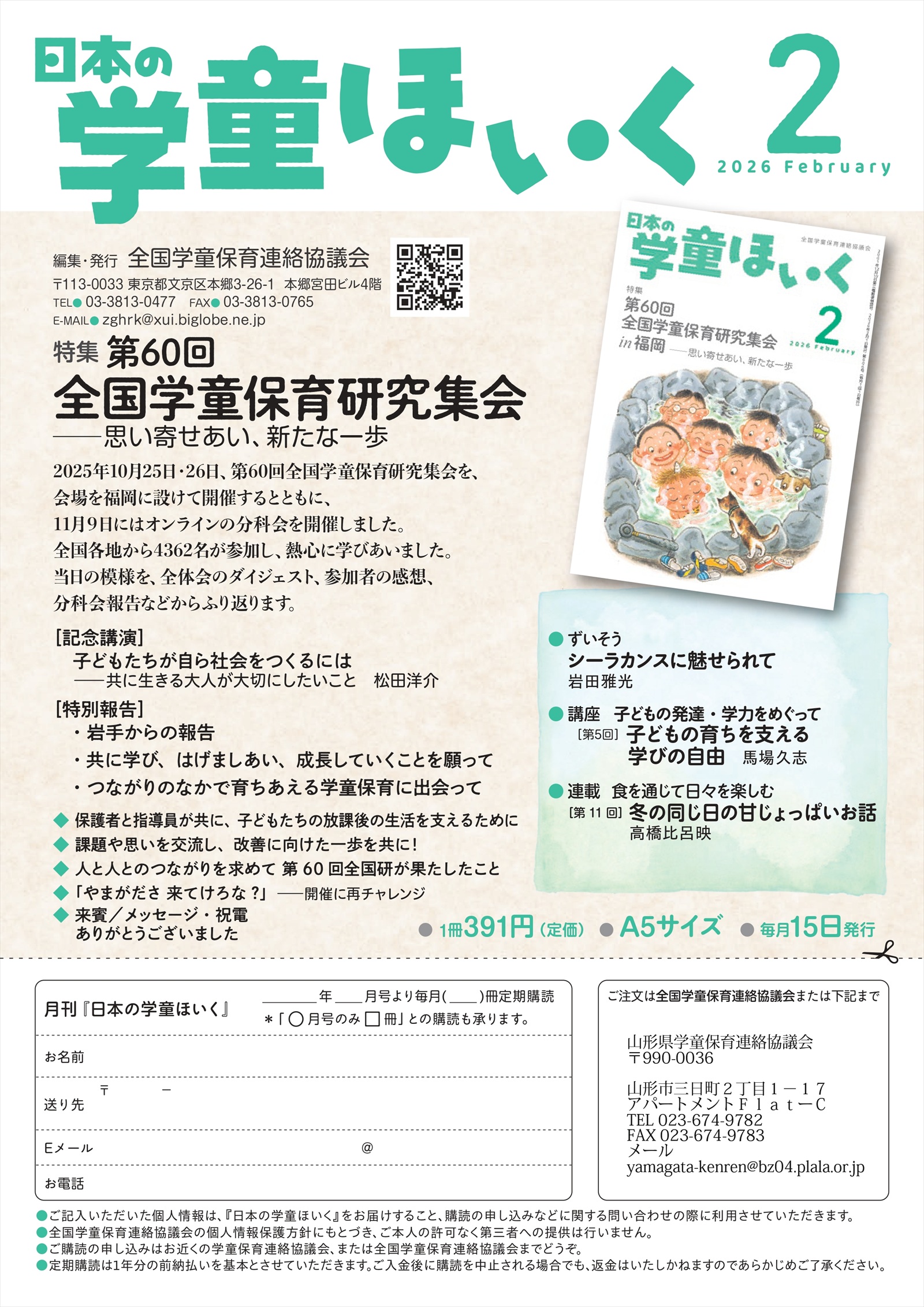● 2026年2月号(No.606)  → チラシ   第60回全国学童保育研究集会in福岡